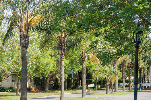 Además, las calles y boulevares están adornados con especies cuidadosamente seleccionadas, como Ibirapitá, Robles australianos, Álamos plateados y Palmeras Pindó y Washingtonia, creando un entorno natural único y armonioso.